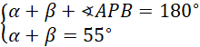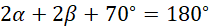 Wykorzystujemy sumę kątów wewnętrznych w trójkącie by ułożyć równania, które pozwolą nam wyznaczyć miarę kąta