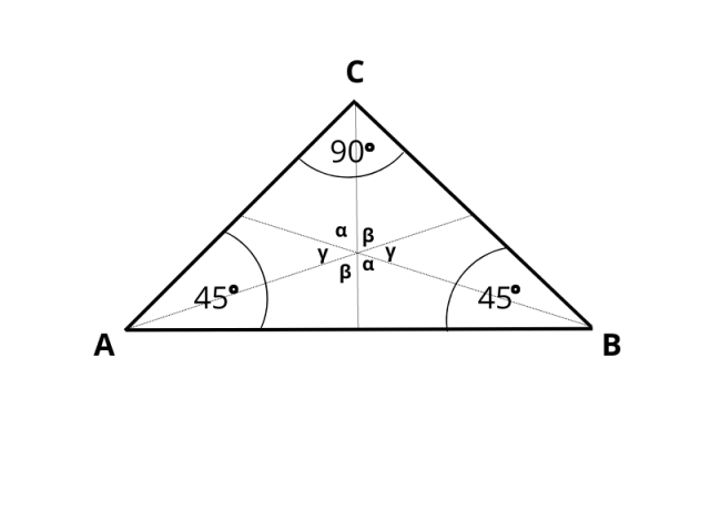 Po narysowaniu trójkąta równoramiennego i dwusiecznych jego kątów zapisz pary kątów, które mają taką samą miarę.