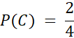 Dla A i B zdarzeń sprzyjających jest po 1 na cztery możliwe, natomiast dla C są dwa zdarzenia sprzyjające na 4 możliwe.