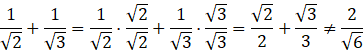 Aby znaleźć sumę danych ułamków, należy najpierw pozbyć się niewymierności z ich mianowników.
