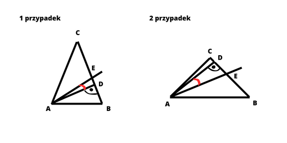 Niech jako D oznaczony będzie spodek wysokości poprowadzonej z wierzchołka A, a jako E – punkt wspólny dwusiecznej kąta BAC oraz boku BC trójkąta. Zatem zgodnie z oznaczeniami miara kąta DAE jest równa 0,1π rad.