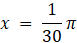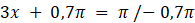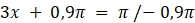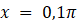 Niech miara kąta DAB będzie oznaczona jako x. Wtedy kąt CAE ma miarę (x + 0,1π) rad oraz miary kątów CAB i ABC wynoszą (2x + 0,2π) rad. Trójkąt ABD jest prostokątny z kątami o miarach: x, 2x + 0,2π, 0,5π. Można zapisać równanie: