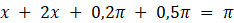 Niech miara kąta DAB będzie oznaczona jako x. Wtedy miary kątów trójkąta prostokątnego ABD wynoszą: x, 2x + 0,2π, 0,5π.