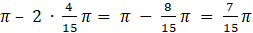 Kąty przy podstawie trójkąta ABC mają zatem miary 0,4π, a kąt między ramionami - 0,2π.
