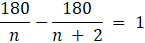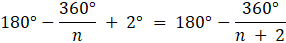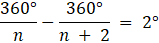 Różnica między kątami wewnętrznymi wielokątów n-kątnego i (n + 2)-kątnego wynosi 2°. Podaj n.