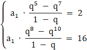 W tym zadaniu musisz znaleźć sumę dziewięciu początkowych wyrazów ciągu geometrycznego, w którym znane są związki pomiędzy pewnymi sumami jego początkowych wyrazów.