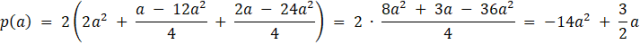 Zgodnie z warunkami zadania długości dwóch krawędzi tego prostopadłościanu to a i 2a. Trzecia długość znajdziemy, rozwiązując równanie: