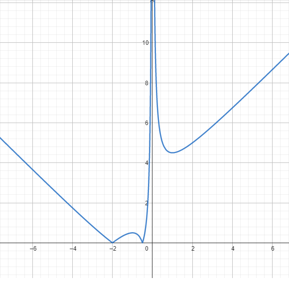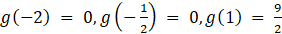 Funkcja g osiąga cztery ekstrema dla x = -2, x = -1, x = -0,5 oraz dla x = 1.