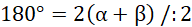 Stwórz równanie wykorzystujące sumę kątów w trójkącie. Zauważ, że trzeci z kątów to suma pozostałych dwóch. Następnie zredukuj wyrazy podobne i znajdź wartość wyrażenia na sumę (niewiadomą jest całe wyrażenie, nie zaś poszczególne kąty).