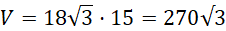 Podstawą jest trójkąt (30°,60°,90°), więc krawędzie podstawy równają się (6cm, 6√3cm, 12cm). Wyliczamy pole trójkąta prostokątnego, a następnie objętość jako iloczyn pola podstawy i wysokości.