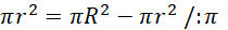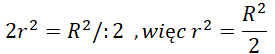 W tym zadaniu posłużyć się należy wzorem na pole koła i obliczyć, jaki musi być wzajemny stosunek dwóch promieni, by pola koła wewnętrznego i zewnętrznego pierścienia były równe.