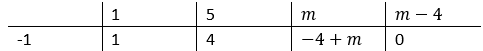 Narysuj tabelę. W pierwszym wierszu wpisz wszystkie kolejne współczynniki uporządkowanego wielomianu. W lewym dolnym rogu najniższego wiersza tabelki wpisz liczbę, która jest miejscem zerowym dwumianu, czyli (-1). Przepisz pierwszy współczynniku bez zmian do dolnego wiersza. Tak otrzymaną liczbę 1 pomnóż przez liczbę (-1), która jest miejscem zerowym dwumianu, następnie dodaj liczbę 5. Wynik będący liczbą 4 wpisz do kolejnej komórki dolnego wiersza w schemacie Hornera. Podobnie postępuj z kolejnymi współczynnikami wielomianu.