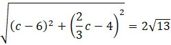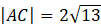 Długość odcinka |AC| jest równa długości dwóch promieni okręgu, co wynika z własności trójkąta prostokątnego wpisanego w okrąg. Zatem: