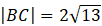Długość odcinka |BC| jest równa długości dwóch promieni okręgu, co wynika z własności trójkąta prostokątnego wpisanego w okrąg. Zatem: