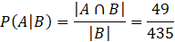 Oblicz prawdopodobieństwo zdarzenia A pod warunkiem zajścia zdarzenia B, czyli iloraz mocy zbioru
