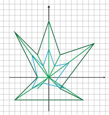 Możesz przewidzieć, że po wykonaniu przekształceń z zadania 10, otrzymasz wielokąt o bokach dwa razy dłuższych. Wykonaj przekształcenie, aby to sprawdzić. Otrzymałeś wielokąt o bokach dwa razy dłuższych — zatem przewidywania były słuszne.