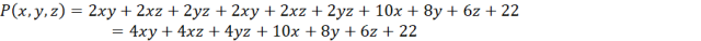 W tym zadaniu musisz wyznaczyć wielomian opisujący sumę pól powierzchni całkowitych prostopadłościanów o krawędziach x, y , i x+1, y+2, z+3.