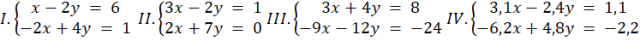 I-układ sprzeczny, II- układ oznaczony, III, IV- układy nieoznaczone