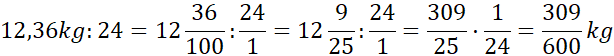 W tym zadaniu oblicz, jaką pojemność ma jeden karton mleka, jeśli mleko w dwudziestu czterech kartonach waży 12,36 kg, wiedząc, że dwa litry mleka ważą 2,06 kg.