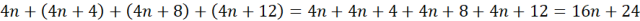 W tym zadaniu musisz zapisać sumę czterech kolejnych liczb naturalnych podzielnych przez 4, gdzie n oznacza dowolną liczbę różną od zera.
