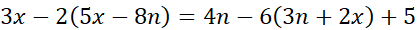 6 – 2(10 – 8n) = 4n – 6(3n + 4) + 5