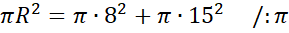 Skorzystaj ze wzoru na pole koła: . Z treści zadania wiesz, że pole koła o promieniu R jest równe sumie pól kół o promieniach 8 i 15. Zapisz to za pomocą równania i wyznacz z niego wartość R.