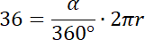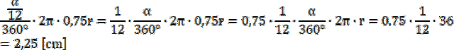 Aby rozwiązać zadanie zacznij od zapisania wzoru na długość łuku, który przebywa wskazówka minutowa w danym czasie i przyrównaj go do 36 cm. Następnie zapisz, jaki kąt w tym samym czasie pokona wskazówka godzinowa (posłuż się tym samym kątem, co w przypadku wskazówki minutowej). Przekształć otrzymane wyrażenie tak, by móc do niego podstawić drogę pokonywaną przez koniec wskazówki minutowej. Na koniec oblicz, jaką drogę pokonał koniec wskazówki godzinowej.