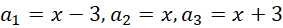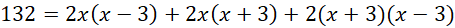 Przyjmij, że środkowy wyraz (jeden z krawędzi) ma długość x, a pozostałe x -3 oraz x + 3. Oblicz x korzystając z podanego pola całkowitego.
