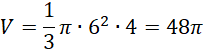 W tym zadaniu oblicz objętość stożka o wysokości 4 i średnicy podstawy 12.