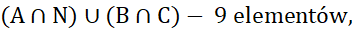 (A∩N)∪(B∩C) - Do pierwszego przecięcia należą liczby naturalne mniejsze niż 5: 0, 1, 2, 3, 4. Natomiast do drugiego przecięcia należą ułamki większe lub równe 1, ale mniejsze niż 2: