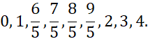 Pierwsze przecięcie wynika z wyżej wypisanego zbioru, natomiast później należy wybrać te ułamki, które stanowią liczby naturalne.