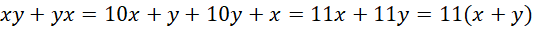 , więc cały iloczyn, czyli suma liczby dwucyfrowej i liczby powstałej z przedstawienia cyfr tej liczby jest podzielna przez 11.