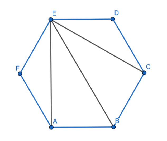 Wyznacz miary kątów powstałych trójkątów, jeśli przekątne poprowadzone z jednego wierzchołka sześciokąta foremnego podzieliły go na cztery trójkąty.