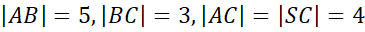 Wyznacz cosinusy kątów trójkąta ABS, jeśli dany jest ostrosłup trójkątny, w którym krawędź SC jest prostopadła do podstawy ABC oraz