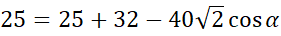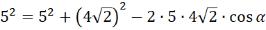 Skorzystaj z twierdzenia Pitagorasa, aby obliczyć długość pozostałych krawędzi bocznych ostrosłupa, a następnie dwukrotnie skorzystaj z twierdzenia cosinusów w podanym trójkącie: