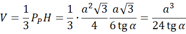 Wyznacz objętość ostrosłupa prawidłowego trójkątnego, w którym wysokość tworzy z wysokością ściany bocznej kąt