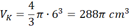 Wyznacz objętości otrzymanych odcinków kuli, jeśli kulę o promieniu 6 cm przecięto płaszczyzną, której odległość od środka kuli jest równa 3 cm.