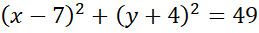 Wyznacz równanie okręgu o promieniu 7, jeśli leży na nim punkt A=(0,-4).
