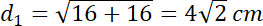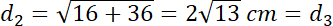 – przekątne ścian prostopadłościanu o wymiarach 4 cm x 4 cm, 4 cm x 6 cm i 4 cm x 6 cm