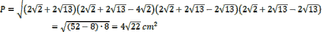 Skorzystaj z twierdzenia Pitagorasa, aby obliczyć długości boków powstałego przekroju, a następnie oblicz jego pole korzystając ze wzoru z połową obwodu.