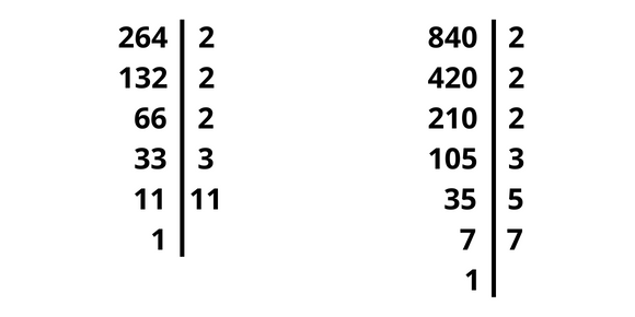 NWW (264, 840) = 2 • 2 • 2 • 3 = 24