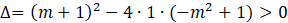Równanie ma dwa rozwiązania wtedy gdy delta jest większa od zera. Oblicz dla jakich m: