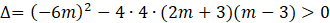 Równanie ma dwa rozwiązania wtedy gdy delta jest większa od zera. Oblicz dla jakich m: