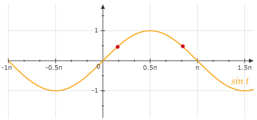 Narysuj wykres funkcji sinus i zaznacz na argumenty dla których funkcja jest równa