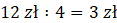 Oblicz ile kosztuję jeden bilet 20-minutowy, wiedząc, że Weronika zapłaciła za 4 takie bilety 12 zł.