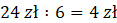 Korzystając z tego, że Martyna za 6 biletów 75-minutowych zapłaciła 24 zł, oblicz ile kosztuję jeden taki bilet.
