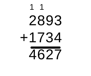 Dodaj do siebie koszt albumów przyrodniczych i koszt baśni, by dostać koszt dostawy. Wykonując dodawanie pisemne, najpierw należy w słupku dodać do siebie cyfry jedności. Jeśli otrzymana liczba jest dwucyfrowa, należy cyfrę jedności takiego wyniku zapisać pod słupkiem cyfr jedności, a cyfrę dziesiątek z wyniku trzeba przenieść dalej poprzez dopisanie tej cyfry nad kolejnym w lewo słupkiem, czyli słupkiem cyfr dziesiątek. Przy dodawaniu kolejnego słupka, do wyniku należy dodać przeniesioną cyfrę ze słupka wcześniej. W taki sam sposób należy dodawać każdy kolejny słupek, zaczynając od lewej i idąc do prawej. Jeśli w ostatnim słupku wyjdzie liczba większa od 10, to już nie wolno przenosić dalej, bo nie ma kolejnego słupka, lecz należy napisać całą liczbę.