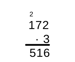 Pomnóż wagę jednej skrzyni przez ich liczbę, by zobaczyć, że ważą więcej niż 500 kg i móc stwierdzić, że winda nie ruszy, ponieważ jej maksymalny udźwig to 500 kg. Wykonując mnożenie pisemne przez liczbę jednocyfrową, należy najpierw pomnożyć liczbę jednocyfrową, przez cyfrę jedności większej liczby. Jeśli otrzymana liczba jest dwucyfrowa, należy cyfrę jedności takiego wyniku zapisać pod słupkiem cyfr jedności, a cyfrę dziesiątek z wyniku trzeba przenieść dalej poprzez dopisanie tej cyfry nad kolejnym w lewo słupkiem, czyli słupkiem cyfr dziesiątek. Przy mnożeniu kolejnego słupka, do wyniku dodaje się przeniesioną cyfrę ze słupka wcześniej. W taki sam sposób należy mnożyć każdą kolejną cyfrę większej z liczb zaczynając od lewej i idąc do prawej. Jeśli w ostatnim słupku wyjdzie liczba większa od 10, to już nie wolno przenosić dalej, bo nie ma kolejnego słupka, lecz należy napisać całą liczbę.