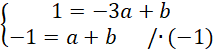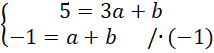 Zapisz wzór na równanie kierunkowe prostej oraz na podstawie rysunku zapisz współrzędne punktów A i B. Współrzędne punktów A i C podstaw pod zapisane równanie kierunkowe. Zauważ, że powstanie układ dwóch równań z dwoma niewiadomymi. Całe drugie równanie pomnóż przez -1, aby współczynniki przy