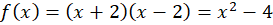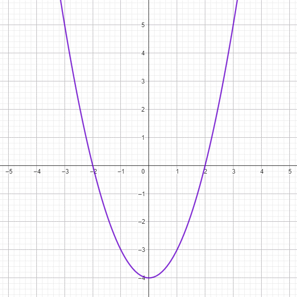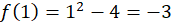 Punkt o współrzędnych (p, q) jest wierzchołkiem funkcji, czyli (0, -4). Oblicz wartość dla argumentu 1: